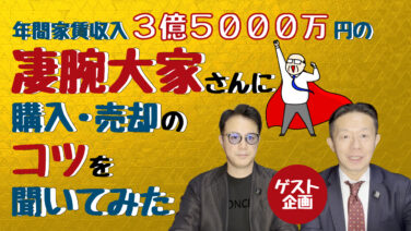 売却お役立ち情報 年間家賃収入3億5000万円の凄腕大家さんに購入・売却のコツを聞いてみた 今回は、YouTube「栗本社長の不動産投資最前線」で紹介したお客様との対談をまとめたものです。年間家賃収入3億5000万円を超える凄腕大家さんである株式会社OFFICE K'Sの豊田社長に登場いただき、不動産投資の購入や売却のリアルなコツ... 2026.03.12 売却お役立ち情報